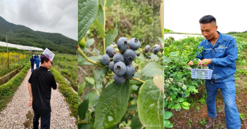 6月29日早上九點(diǎn)左右,丙班組員在班長(zhǎng)的帶領(lǐng)下組織了四輛小車自駕前往,在經(jīng)過長(zhǎng)達(dá)1個(gè)多小時(shí)的行車后,全體到達(dá)了目的地“鵝鳩壩藍(lán)莓采摘基地”,一個(gè)位于西昌市原大青鄉(xiāng)鵝鳩壩村的小村莊。